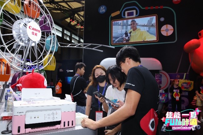 现场佳能还为参赛者和coser们提供打印照片的机会,来到喷墨打印机体验区,薄荷绿、玫瑰粉、艾叶绿、丁香紫,颜色各异的佳能小g灵系列喷墨打印机亮相展台,多巴胺配色的机身外观引大家前来试用、打印作品。